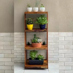 Estante Escada Rústica em Madeira de Demolição - Horta Vertical
